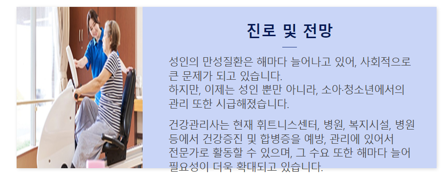 건강 관리의 중요성이 대두되는 요즘, 전문적인 건강관리사의 수요는 급증하고 있죠.