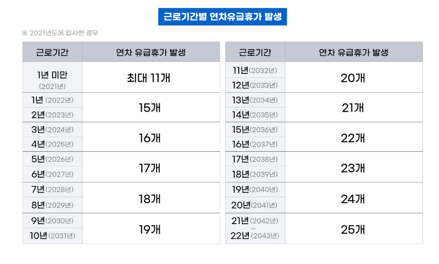이후 2년마다 하루씩 추가돼서 최대 25일까지 늘어나요.